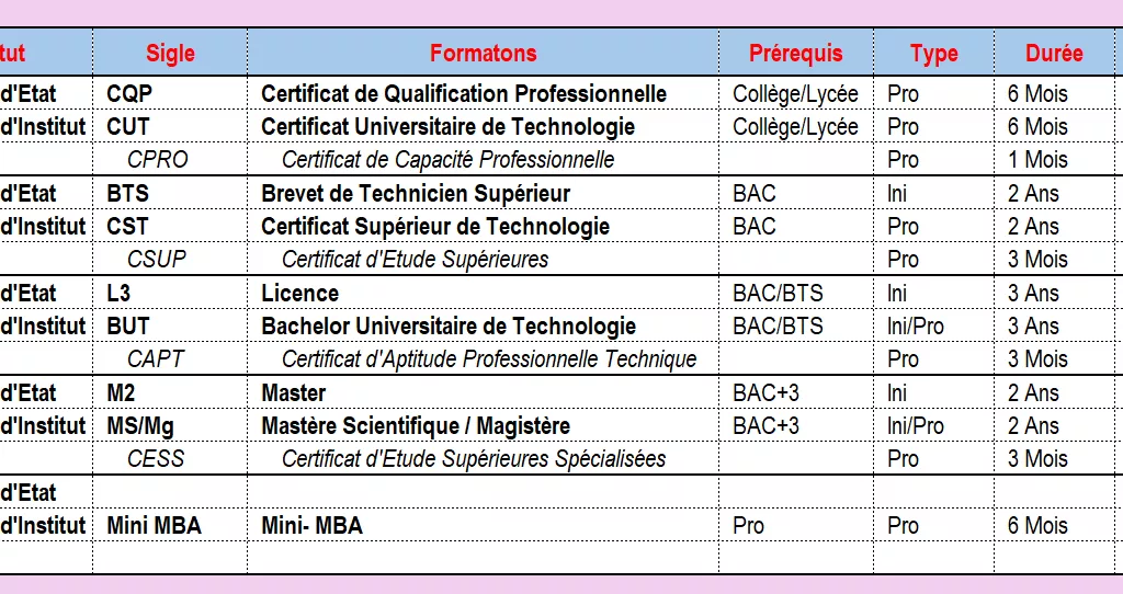 Explorez notre large gamme de formations : CQP, BTS, licences, Masters, Mini-MBA.